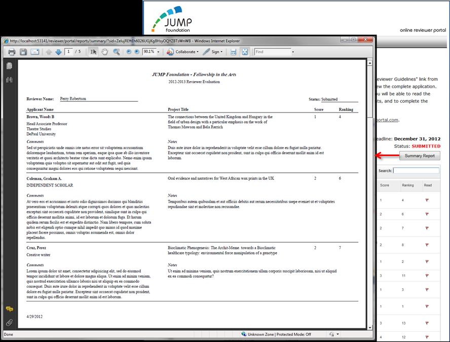 Screen 3: Reviewer summary report